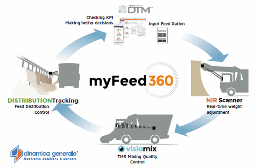 Dank skalierbarer Wiegesysteme, die für die Integration mit modernen Präzisionsfütterungssystemen optimiert sind, bietet Dinamica Generale ein Programm namens MyFeed 360 an. Der große Wettbewerbsvorteil von Dinamica Generale besteht darin, dass jeder Betrieb von