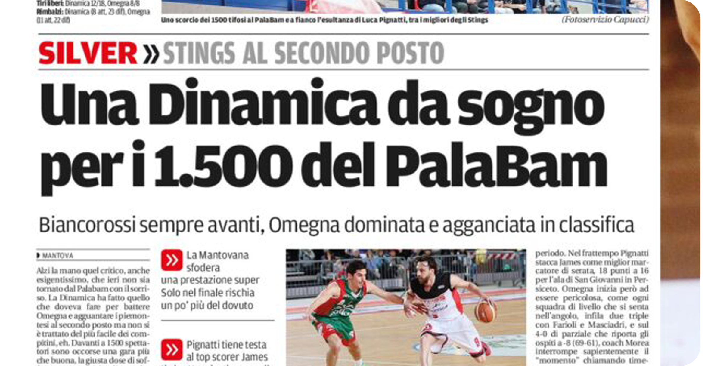 Questi due articoli pubblicati dalla Gazzetta di Mantova raccontano una delle serate più significative della stagione della Dinamica Mantova, capace di unire risultati sportivi, identità di squadra e forte partecipazione del pubblico.