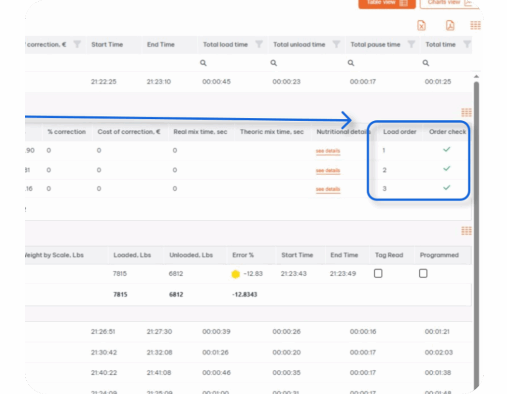 Die neue Spalte Ladeauftrag zeigt die tatsächliche Ladesequenz an. Außerdem zeigt die Spalte Auftragsprüfung sofort korrekte oder falsche Ladeaufträge an.