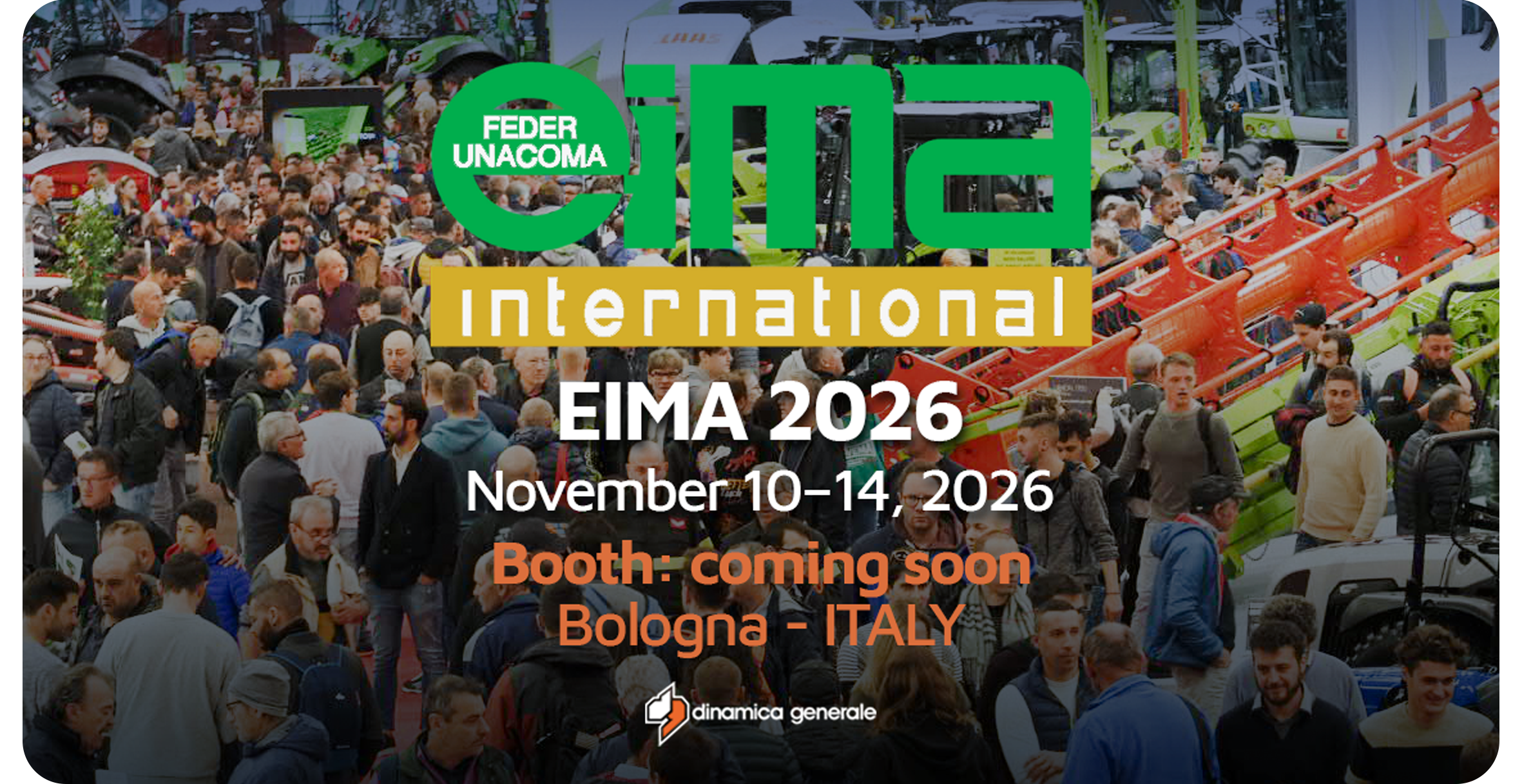 We are pleased to announce that Dinamica Generale S.p.A. will participate in EIMA International 2026, one of the world’s leading international exhibitions dedicated to agricultural machinery, technologies, and innovation.