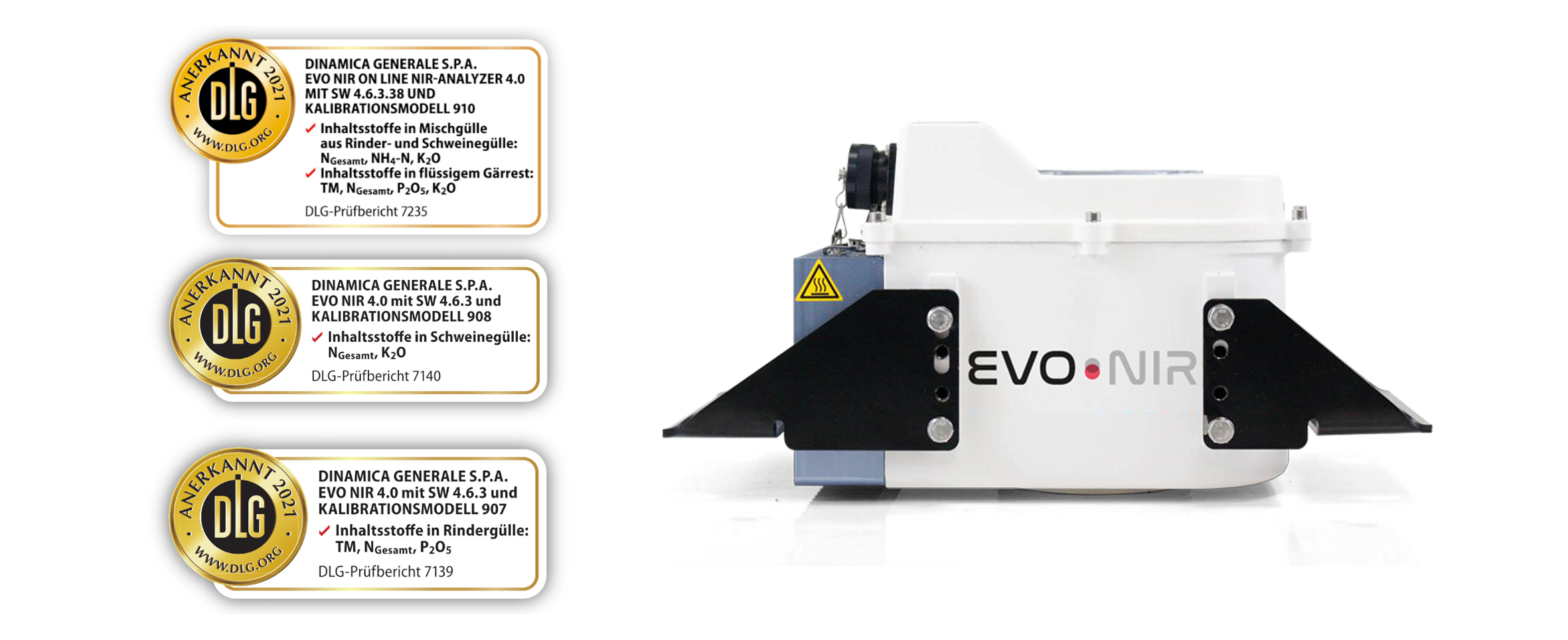 EVONIR has earned three DLG certifications for accuracy and reliability in NIR analysis, a recognition that highlights the quality of the sensor and its ability to deliver precise and reliable data. Learn more: