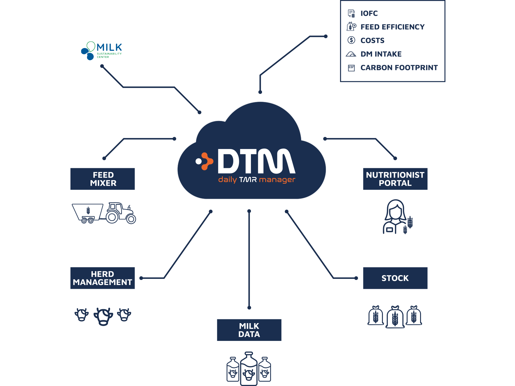 Integrate your herd-milking software to automatically import milk production and cow data with ease. DTM is compatible with all major brands, ensuring a smooth connection. Gain access to live reports on feed efficiency and Income Over Feed Cost (IOFC).