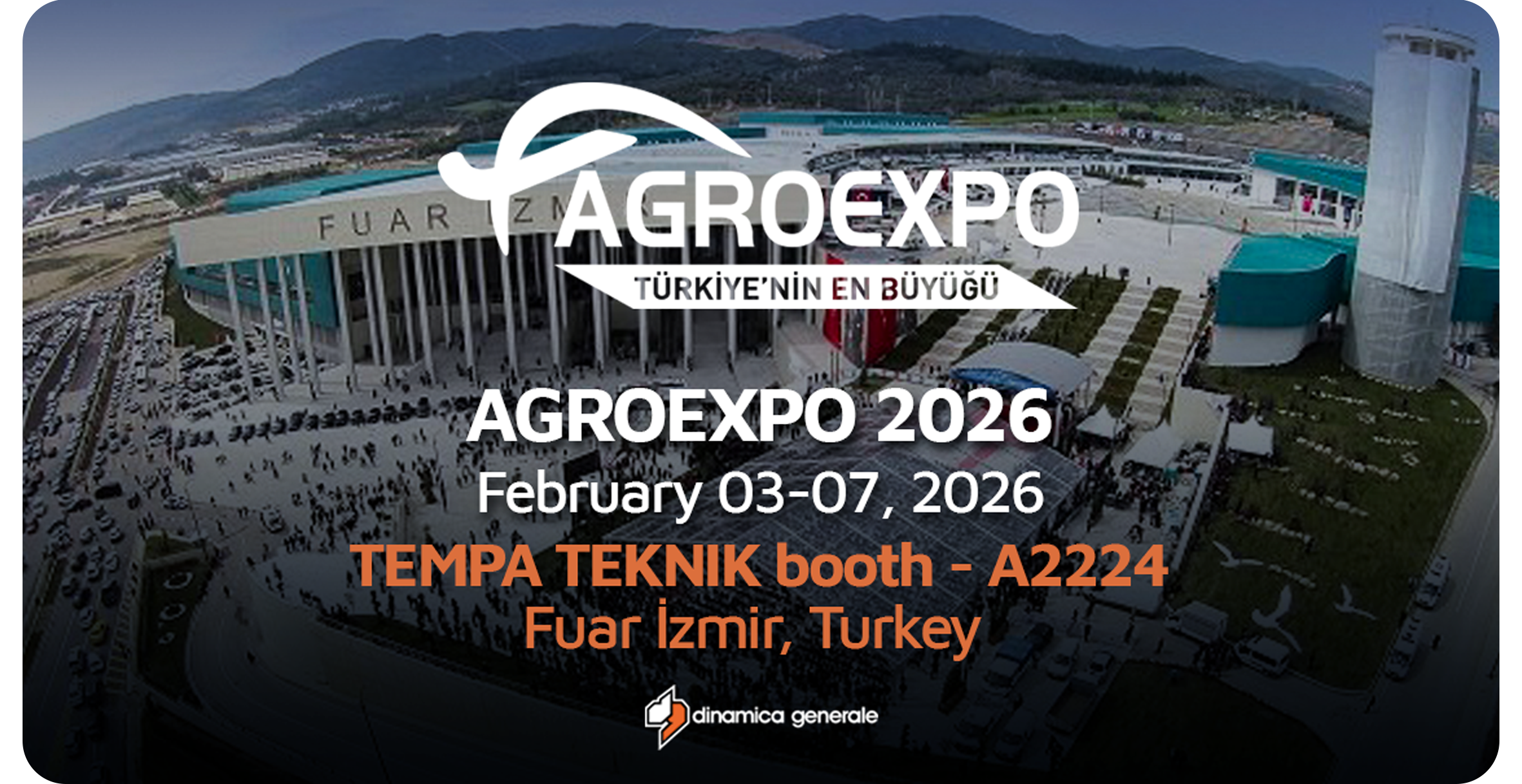 我们将参展于 2026 年 2 月 3 日至 7 日举行的AGROEXPO 2026 – 国际农业和畜牧业博览会 ,这是土耳其领先的农业贸易博览会,也是农业和畜牧业领域最重要的国际活动之一。